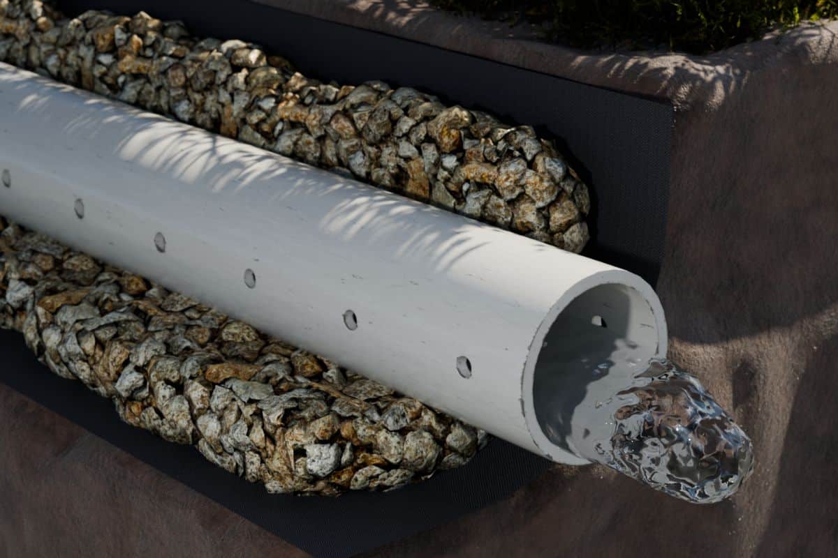 - Landscape fabric – Prevents soil from clogging the gravel and pipe.