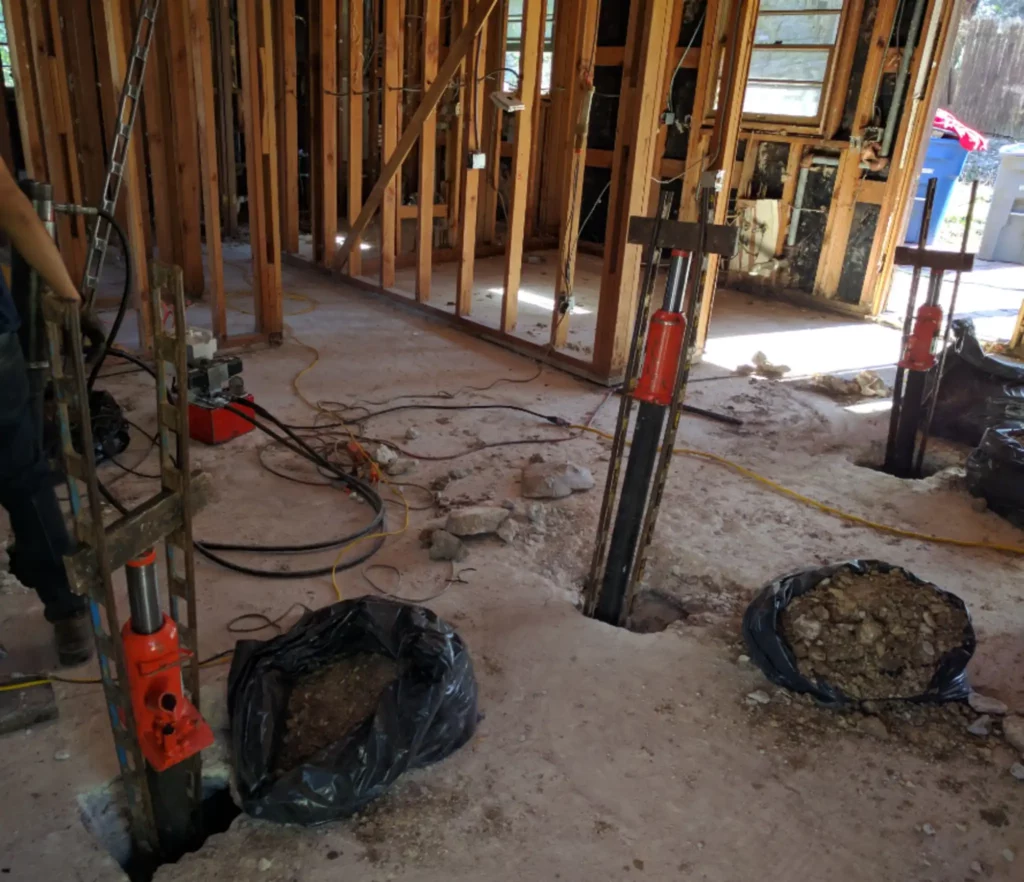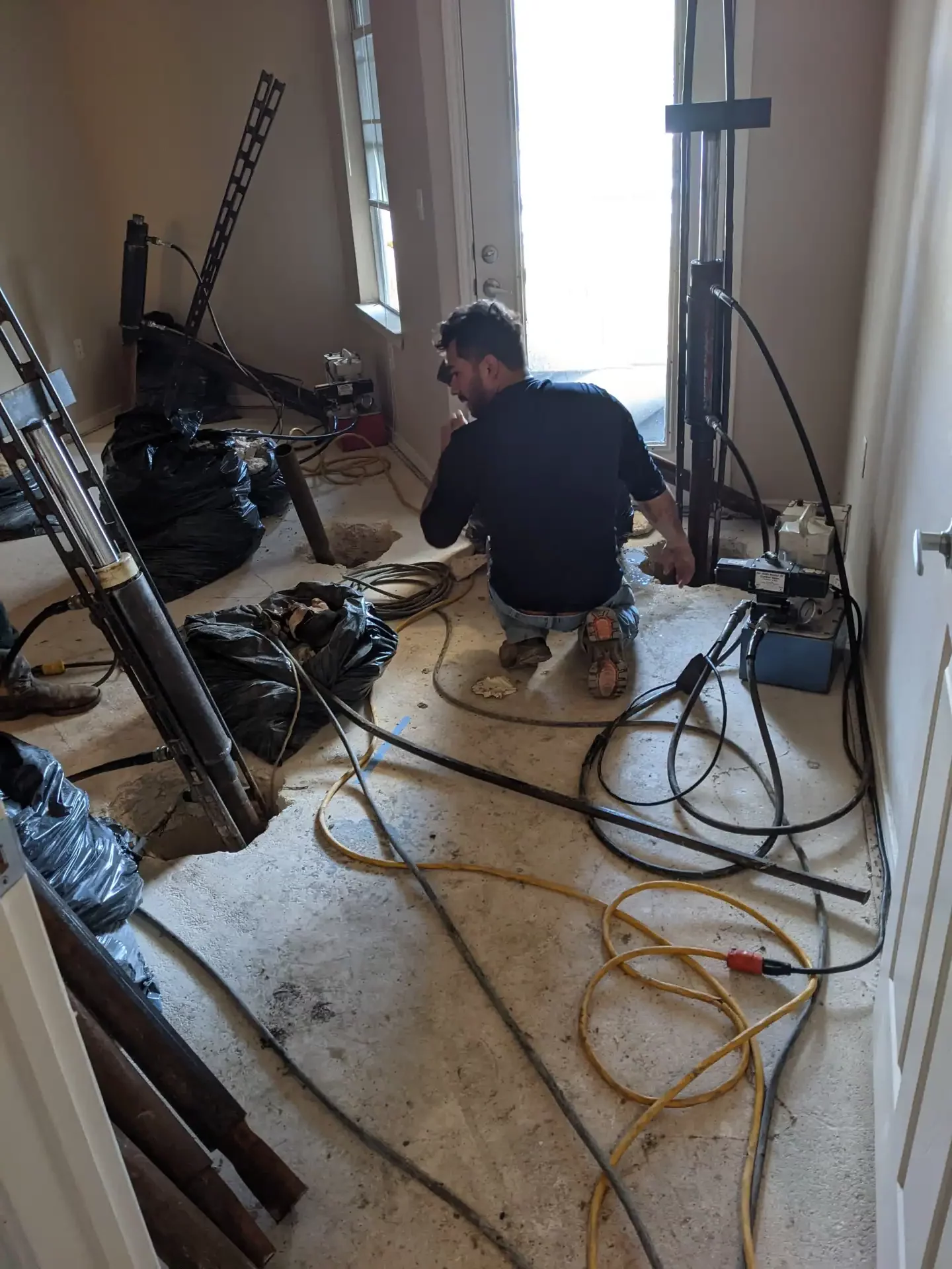 We stabilize cracked, sinking concrete slabs using piers designed for long-term support in Volente soil conditions.